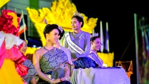 เทศกาลแห่ปราสาทผึ้ง เมืองสกลนคร สวยงามตระการตา..วัฒนธรรมและประเพณีไทย.นำโดยคุณหนึ่งครามนครสกล และคุณใบไผ่ ฌัชชาภาร์ ร่วมนั่งรถขบวนและตกแต่งอย่างสวยงามด้วยฝีมือคนไทย..