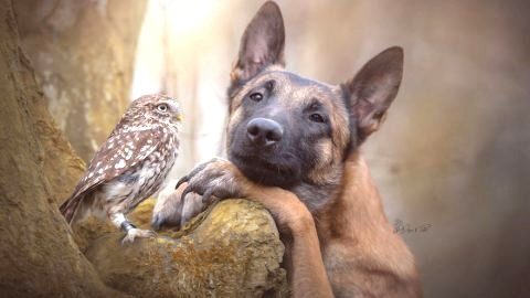 ภาพน่ารัก ๆ มิตรภาพระหว่างสุนัขและนกฮูก
