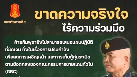 กองทัพภาคที่ 2 ยันชัด! หากภูมิภาคทหารที่ 4 ไม่ร่วมมือจัดทำแผนปรับกำลัง–แผนเก็บกู้ทุ่นระเบิด จะไม่สามารถเข้าร่วมประชุม RBC ได้