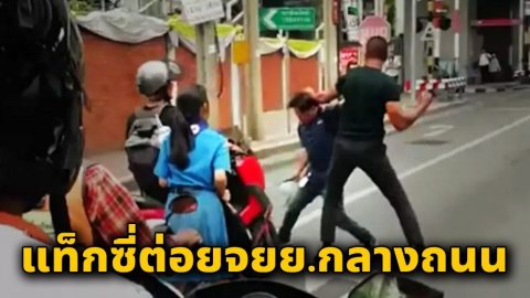 แท็กซี่ต่อยคนขับจยย.กลางถนน ลูกสาวร้องไห้โฮช่วยพ่อหนูด้วย