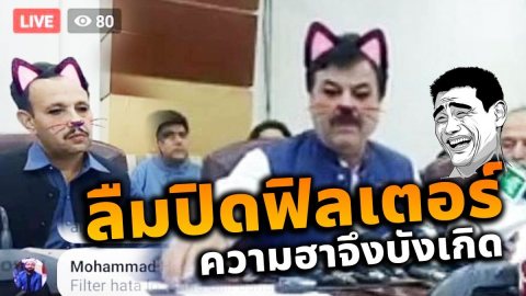 เมื่อลืมปิดฟิลเตอร์แมวระหว่างแถลงข่าว งานนี้ความบันเทิงจึงเกิดขึ้น