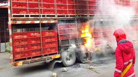 สุดสลดใจ!! ย่างสด200ชีวิต ไฟไหม้รถบรรทุกกลิ่นไก่ย่างเตะจมูก