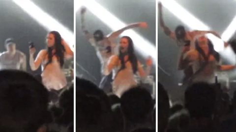 นักร้องนำวง “The Story So Far” กระโดดถีบแฟนเพลงที่พยายามขึ้นมาเซลฟี่ จนตกเวที