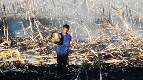 สลดใจ!! อยู่อายุยืนยาวตายเพราะเชื่องช้า ไฟนรกคร่าชีวิตเต่า