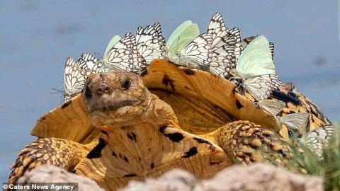 มหัศจรรย์มากๆ เมื่อเต่าเสือดาวยักษ์ถูกฝูงผีเสื้อจู่โจม จนทำให้มันดูคล้ายกับไดโนเสาร์