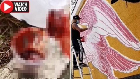 ศิลปินหนุ่มโคลอมเบียกำลังวาดภาพฝาผนัง โดยใช้เลือดมนุษย์เป็นส่วนผสม !