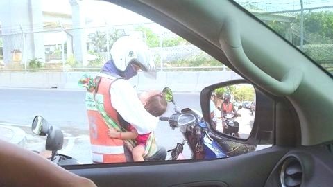 สุดจะกลั้นน้ำตา พี่วินสู้ชีวิตวิ่งรถไปด้วยดูแลลูกน้อยไปด้วย