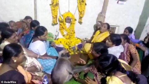 เข้าใจหัวอกคน! ลิงน้อยโผล่งานศพ ก่อนโอบก่อนหญิงสาวที่นั่งร้องไห้ในงานอย่างอ่อนโยน (มีคลิป)