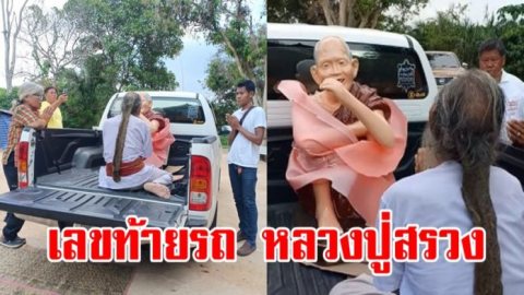สาธุเหนือหัว อัญเชิญหลวงปู่สรวง เทวดาเดินดิน ประดิษฐานเลขท้ายรถโดนตาทุ่มซื้อ 3 ตัว