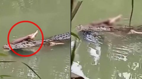 หนุ่มดำน้ำเพื่อซ่อมท่อ โอละหนอ...เจอจระเข้าคาบไป หลักฐานคาปากเลย