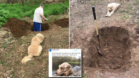 สุดปวดใจ! นักเขียนหนุ่มแบ่งปันภาพพ่อตัวเองบน Twitter ขณะขุดหลุมฝังศพให้สุนัขของครอบครัว