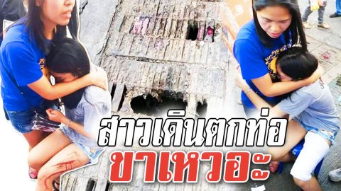 เตือนภัย!! มีมาเรื่อยๆ!! ท่อผุ..! หญิงเดินผ่านพลัดตกได้รับบาดเจ็บ ขาแหกยาว