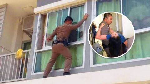 ตำรวจไทยชุดเคลื่อนที่เร็วเร่งปีนหน้าต่างช่วยหญิงสาวกินยาเกินขนาดหวังฆ่าตัวตาย