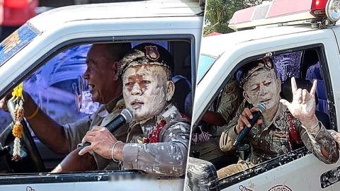 รักหรอกจึงหยอกเล่น! ภาพตำรวจประกาศขอ "งดเล่นแป้ง" แต่ปชช.ให้ความร่วมมือดีมาก!?