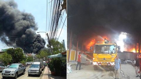 ไฟไหม้โรงงานทำไม้กวาด โชคชัย 4 แยก 54 เขตลาดพร้าว กทม.