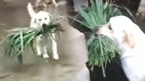 น้องหมาหาหญ้าให้ควายกิน เพื่อนแท้แสนดีต่างสายพันธุ์ ใครเห็นเป็นต้องยิ้ม (มีคลิป)