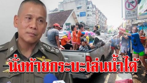 ตร.ไฟเขียวนั่งหลังรถกระบะเล่นสงกรานต์ได้