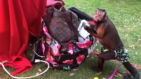 แสบไม่เบา เจ้าลิงจอมเนียนแอบขโมยกินองุ่นในกระเป๋าแบบไม่สนใจเจ้าของ แม้โดนจับได้ (มีคลิป)