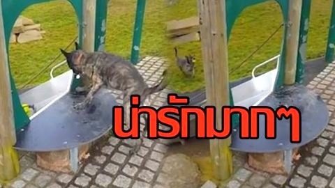 น่ารักมากๆ คลิปสุนัขกู้ภัยเล่นลูกบอลสีเหลืองสดใสลำพังในสนามเด็กเล่น (มีคลิป)