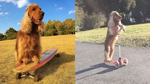 เก่งเกินไปแล้ว!! Coda สุนัขพันธุ์อิงลิช ค็อกเกอร์ สแปเนียล โชว์ขี่สกูตเตอร์และสเก็ตบอร์ดแบบมืออาชีพ