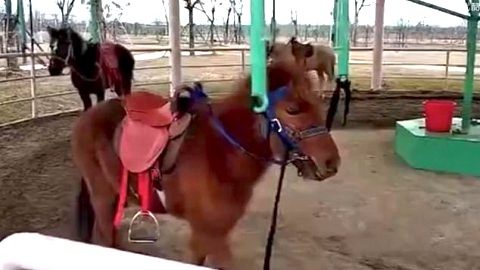 ชาวเน็ตแห่วิจารณ์สนั่น!! สวนสัตว์ในจีนนำม้าจริงๆมาล่ามโซ่เพื่อทำเป็นม้าหมุนให้คนนั่ง (มีคลิป)