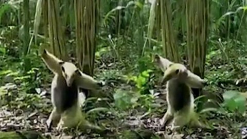 ฮาก๊าก..."ตัวกินมด" โชว์ยืนสองขาหลัง พร้อมโชว์กางแขนเพื่อทำให้เหยี่ยวตกใจ (มีคลิป)