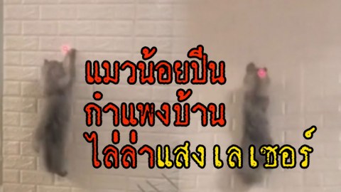 มากความสามารถ แมวน้อยปีนป่ายกำแพงบ้านไล่ล่าแสงเลเซอร์แบบไม่กลัวตก (มีคลิป)