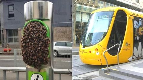 ผู้คนแตกตื่น! พบฝูงผึ้งสร้างรังที่ป้ายรถรางกลางเมืองเมลเบิร์น