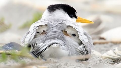 สายสัมพันธ์รักแม่ลูก...ภาพลูกนกนางนวลตัวน้อยนอนซุกใต้ปีกอันแสนอบอุ่นของแม่ ในวันที่อากาศหนาวเย็น
