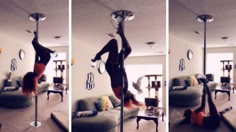 สาวนักโพลแดนซ์สุดงง!! เมื่อนกกระตั้วสุดโปรดบินจิกขระกำลังฝึกซ้อมเต้น (มีคลิป)