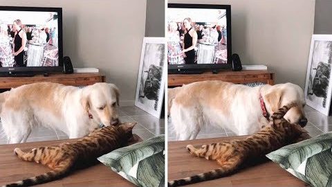 รักกันปานจะกลืนกิน!! กับภาพความอบอุ่นของพี่น้องหมาแมวคู่นี้ (มีคลิป)