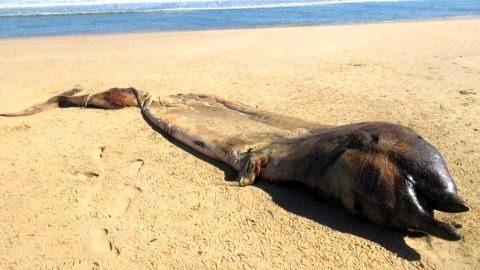 นักวิทย์สุดงง!! พบซากสิ่งมีชีวิตประหลาด ยาว 6 เมตร โผล่ชายหาดในนามิเบีย