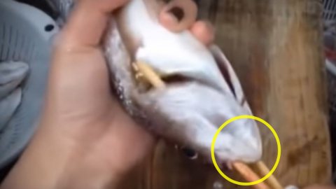(คลิป) สุดยอด Trick! เมื่อเอาไม้ 2 อันสอดทางปากปลาแล้วหมุน สิ่งที่ได้ออกมามันเกินคาดจริงๆ?