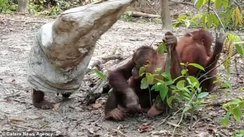 อย่างฮา! ลิงอุรังอุตังจอมซนแกล้งมุดเข้าไปในกระสอบ ก่อนวิ่งไปหลอกเพื่อน (มีคลิป)