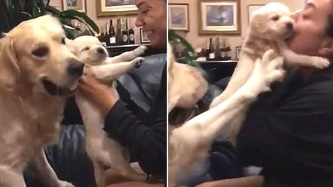 ขำๆ เบาๆ คลิป "โกลเด้น รีทรีฟเวอร์" หวงเจ้านายอย่าหนัก หลังเห็นเจ้าของอุ้มลูกสุนัขตัวน้อย