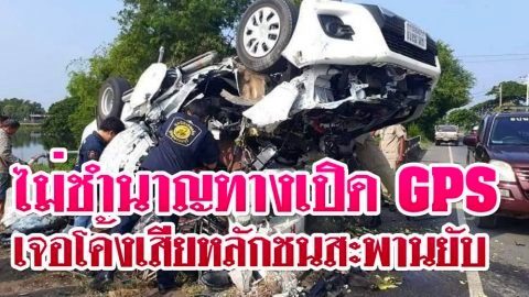 พ่อค้าผลไม้ก้มดู GPS แหกโค้งชนราวสะพาน รถพังยับแต่รอดปาฏิหาริย์!