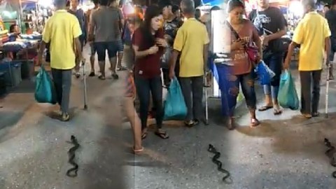 ชาวบ้านสะดุ้ง คุณลุงเดินจูงงู มาเที่ยวตลาด...