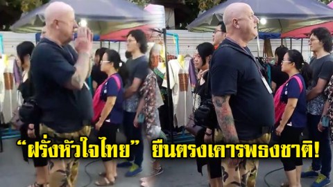 สุดประทับใจ! “ฝรั่งหัวใจไทย” ยืนตรงเคารพธงชาติ กลางตลาด ฟังดีๆถึงกับขนลุก! [คลิป]