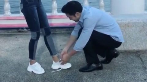 เมื่อ”อ้วน รังสิต”ก้มไปผูกเชือกรองเท้าให้แฟน แต่ตอนท้ายกลับผิดคาด ทำเอาชาวเน็ตขำลั่น(ชมคลิป)
