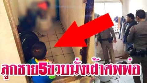 สุดเศร้า!...ลูกชายวัย5ขวบนั่งเฝ้าศพพ่อหลังผูกคอเสียชีวิตในห้องน้ำ