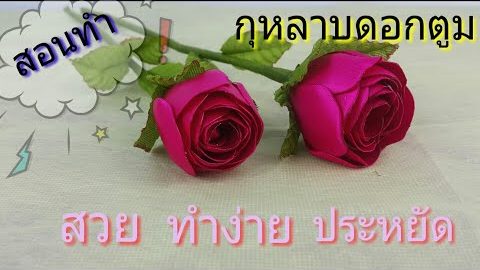 สอนทำดอกกุหลาบ ดอกตูม จากริบบิ้นผ้า