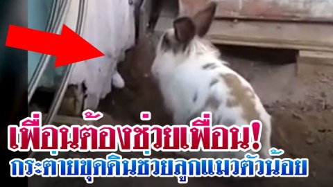 เพื่อนต้องช่วยเพื่อน! กระต่ายขุดดินช่วยลูกแมวตัวน้อย