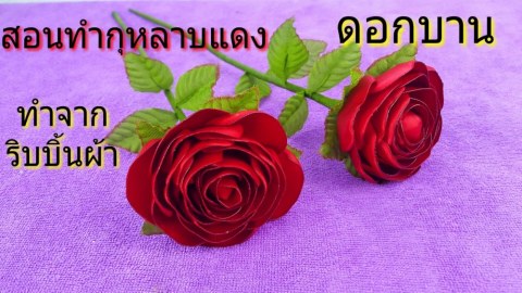 สอนทำดอกกุหลาบดอกบาน จากริบบิ้นผ้า สวยมาก