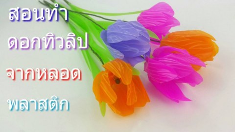 ทำดอกไม้ ดอกทิวลิปจากหลอดพลาสติก เหมือนมาก...