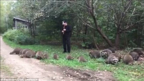 ไม่ธรรมดา! ชายหนุ่มสามารถเป่าขลุ่ยเรียกแรคคูนออกมาเป็นฝูง (มีคลิป)