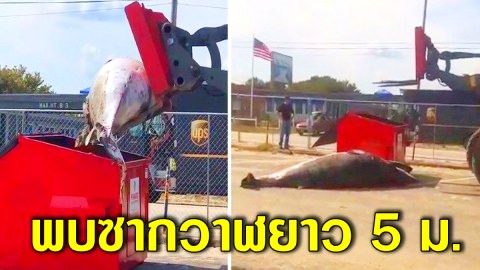 ช็อกไปสิ!! พบซากวาฬยาว 5 เมตร ถูกทิ้งไว้ข้างๆถังขยะ บนลานจอดรถริมชายหาด