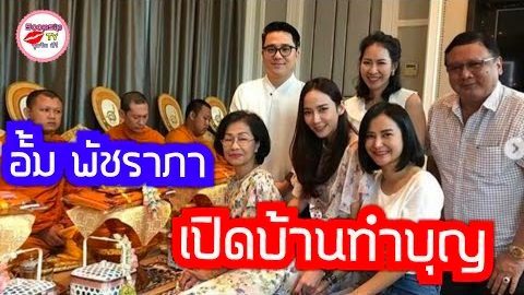 คนสวยใจบุญ "อั้ม พัชราภา" เปิดบ้านทำบุญเลี้ยงพระ ข้าวของถูกจัดได้อย่างงดงาม
