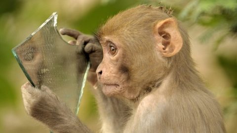 "เกิดมาหน้าตาดีก็เงี้ย" เจ้าลิงน้อยเก็บกระจกเงาได้ เอามาส่องแบบไม่วางกันเลยทีเดียว