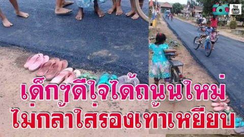 "ซึ้งน้ำตาแทบไหล" เด็กๆดีใจได้ถนนใหม่ ไม่กล้าใส่รองเท้าเหยียบ