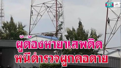 เปิดคลิป !! ผู้ต้องหายาเสพติด วิ่งหนีตำรวจขึ้นไปผูกคอตายบนเสาวิทยุ